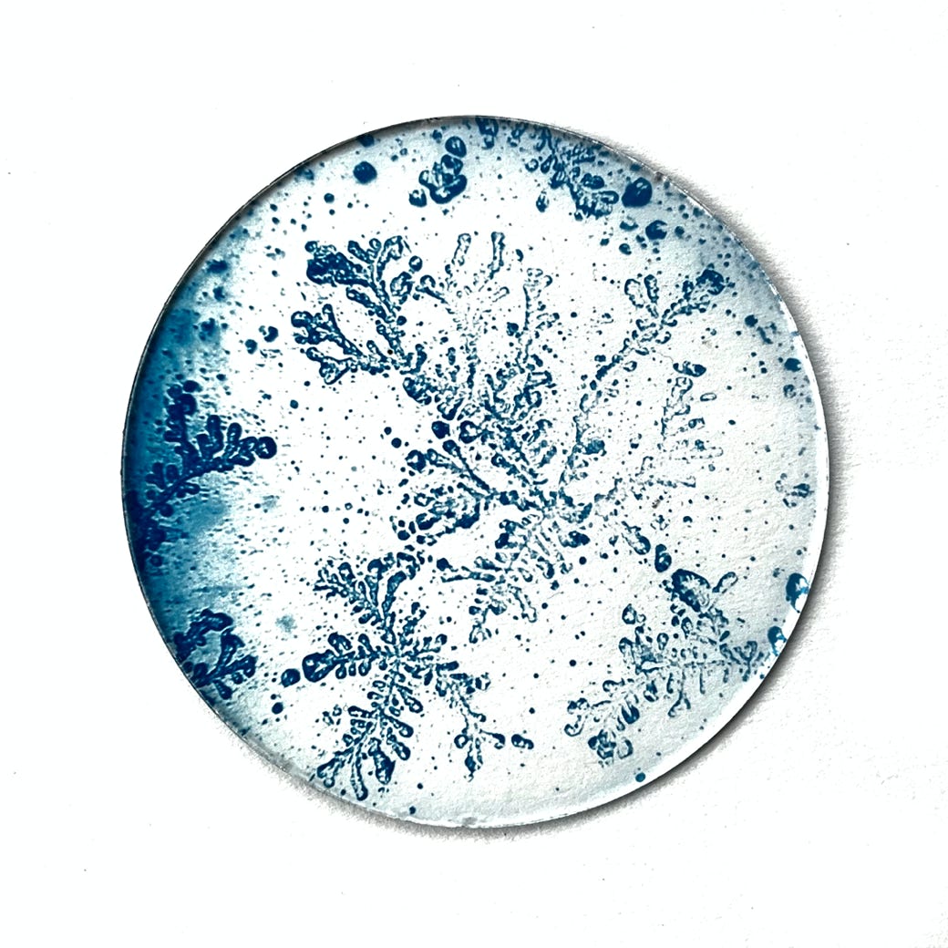 tears on glass transform into deep blue traces: ‘Salt Blossoms’.